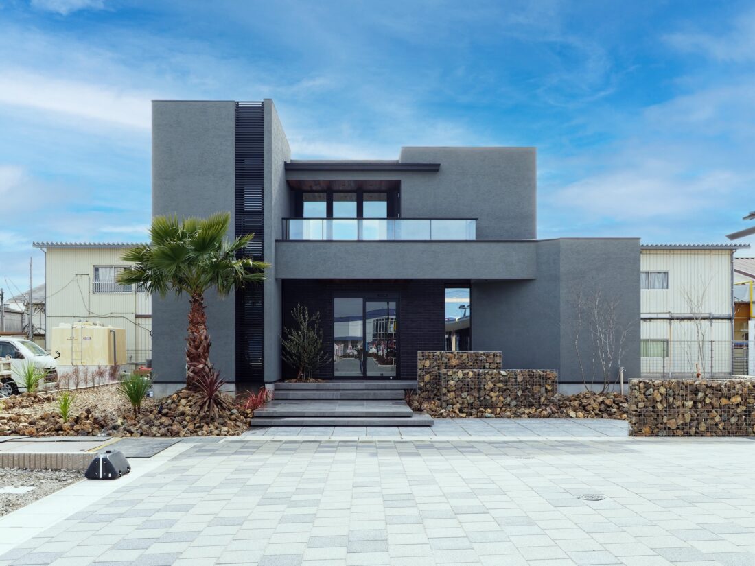 塗り壁といえば、真っ白や真っ黒というイメージを持たれる方も多いですが、チェックハウスでは深みのあるグレー系を使うことが多く、シックでモダンな印象に仕上げています。