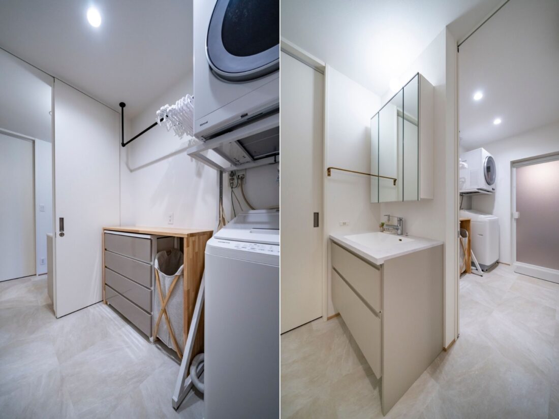 また、浴室・ランドリールーム・洗面を一直線につないだ動線は、毎日の家事を効率化。洗う・干す・しまうがスムーズに完結します。