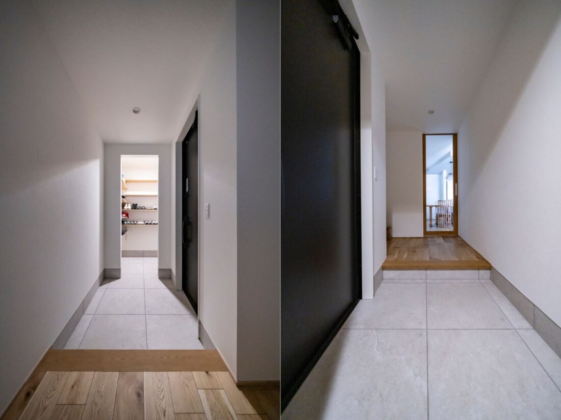 また、玄関床は玄関ポーチと同じ大判タイルを採用し、足元からゆったりとした印象に。