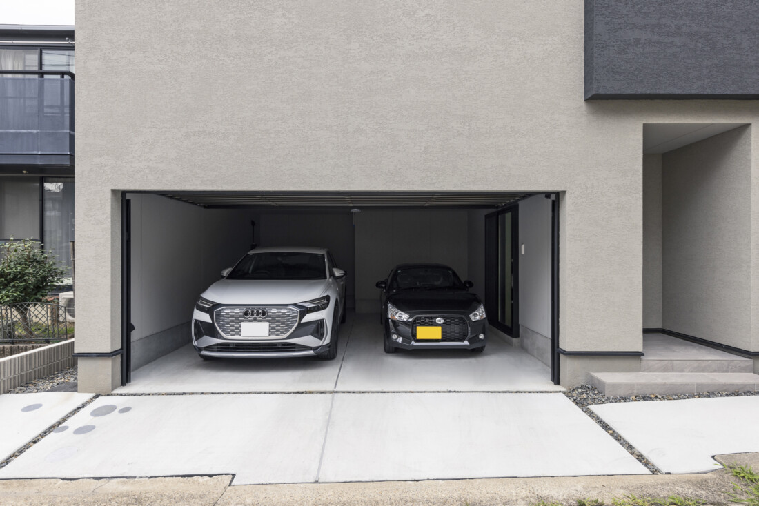 さらに1階には車2台をゆったりと収められるビルトインガレージを計画。ガレージ内から直接室内へとつながる動線を確保し、雨の日もストレスなく出入りができます。