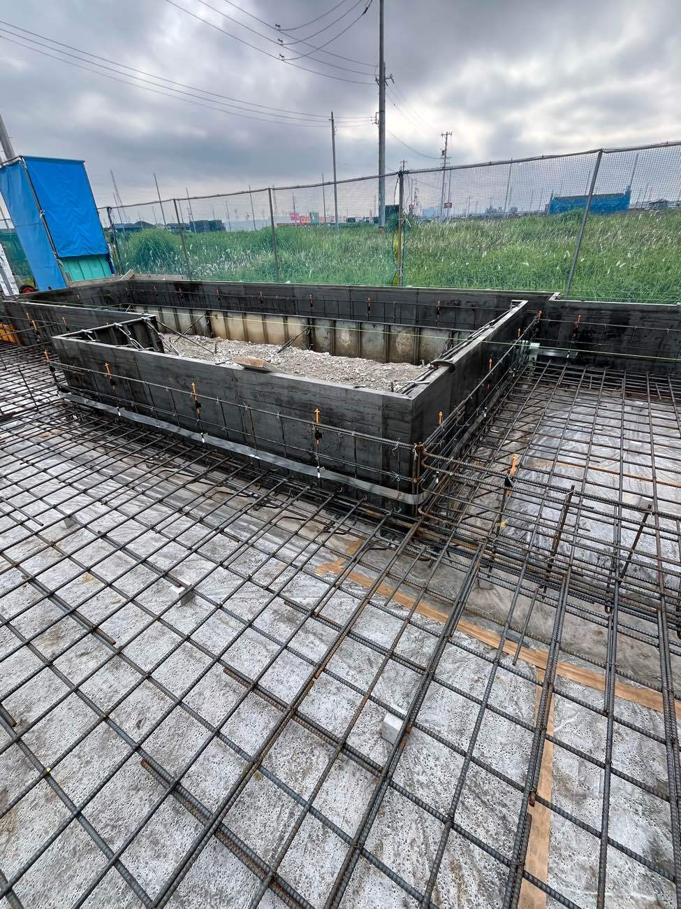 天候に左右されやすいコンクリート打設ですが、梅雨時期を避けてスケジュールを組んだことで、無事に晴天のもと施工を行うことができました。